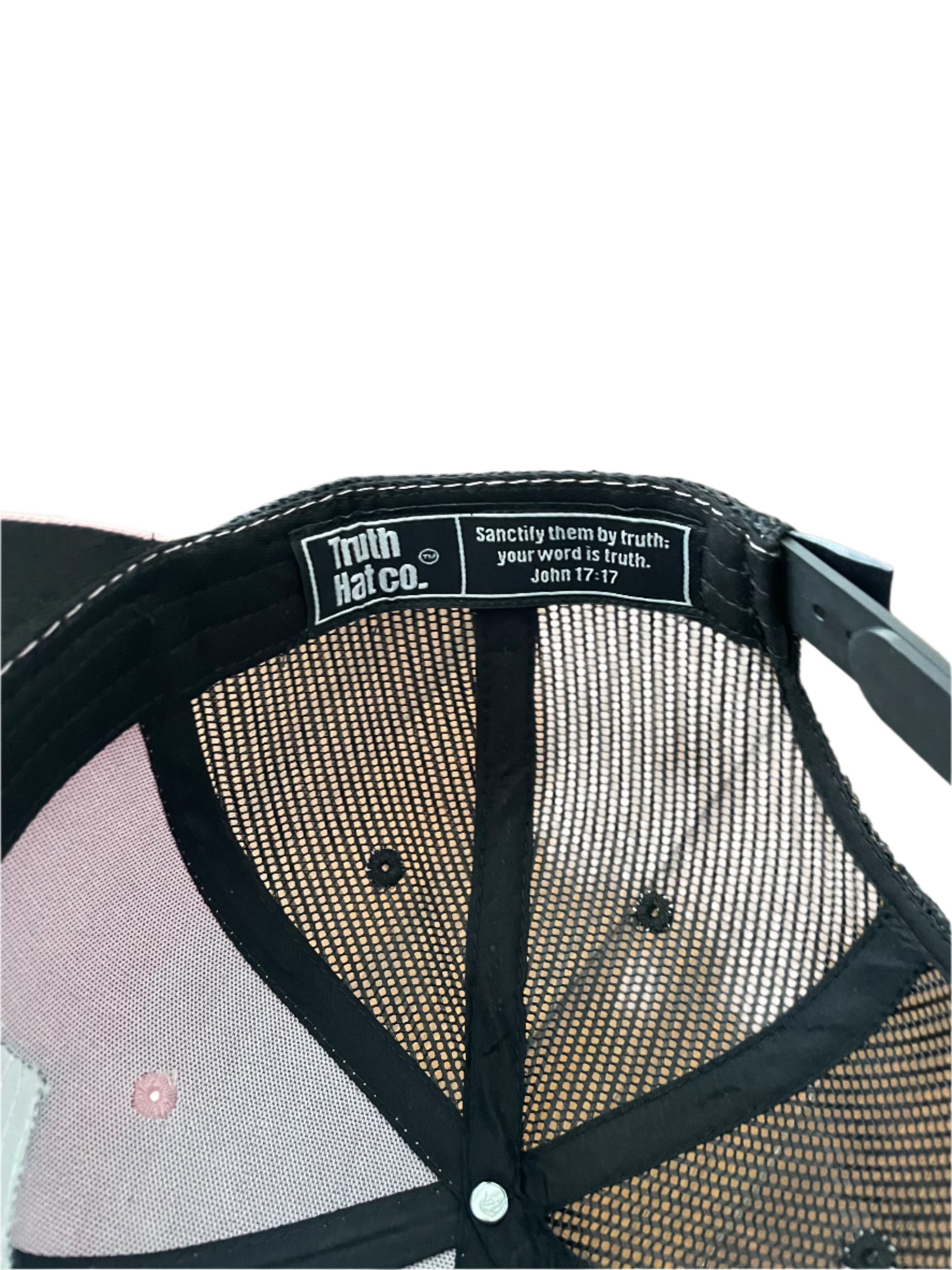 Our Original Trucker features the verse John 17:17 stitched on the inside label, serving as a sweet reminder that His Word is truth!